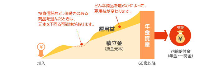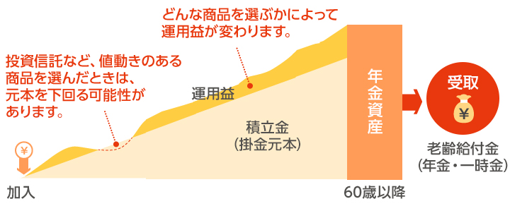 (3)60歳以降に年金、一時金を受け取る、というしくみです。