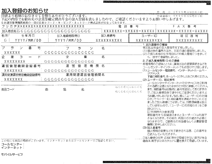 ※「残高のお知らせ」(NRK)、「お取引状況のお知らせ」(JIS&T)には、「DCなび」のログインの際に必要となるID、パスワード等は記載されておりません。ID、パスワード等がわからない方は、再発行を行ってください。お手続きの方法につきましては、ログイン画面にある「ログインヘルプ」をご参照ください。