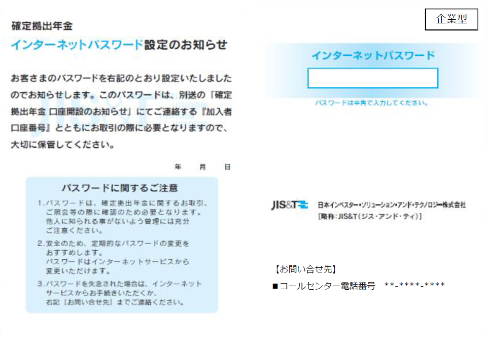 ●パスワード設定のお知らせ(いずれもJIS&T名)をお持ちの方